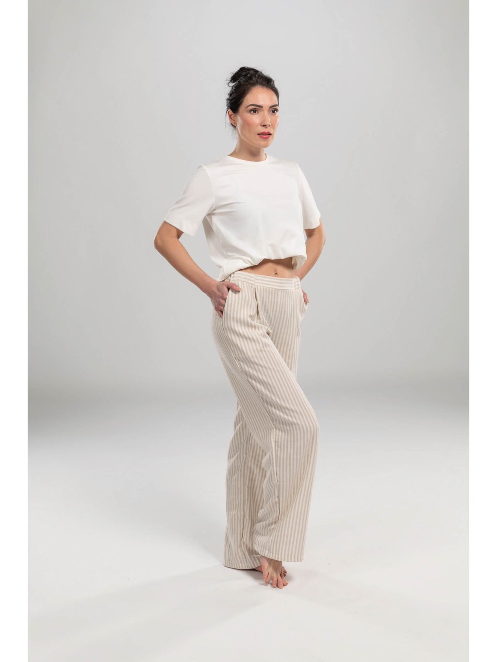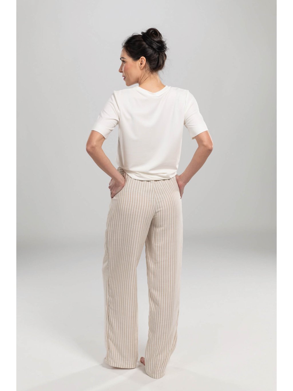 Kalhoty Lena vynikají svým nadčasovým designem a kvalitním materiálem, který zajišťuje pohodlí po celý den. Jejich univerzální střih a elegantní vzhled je činí vhodnými pro různé příležitosti, od pracovního dne po večerní vycházky.
