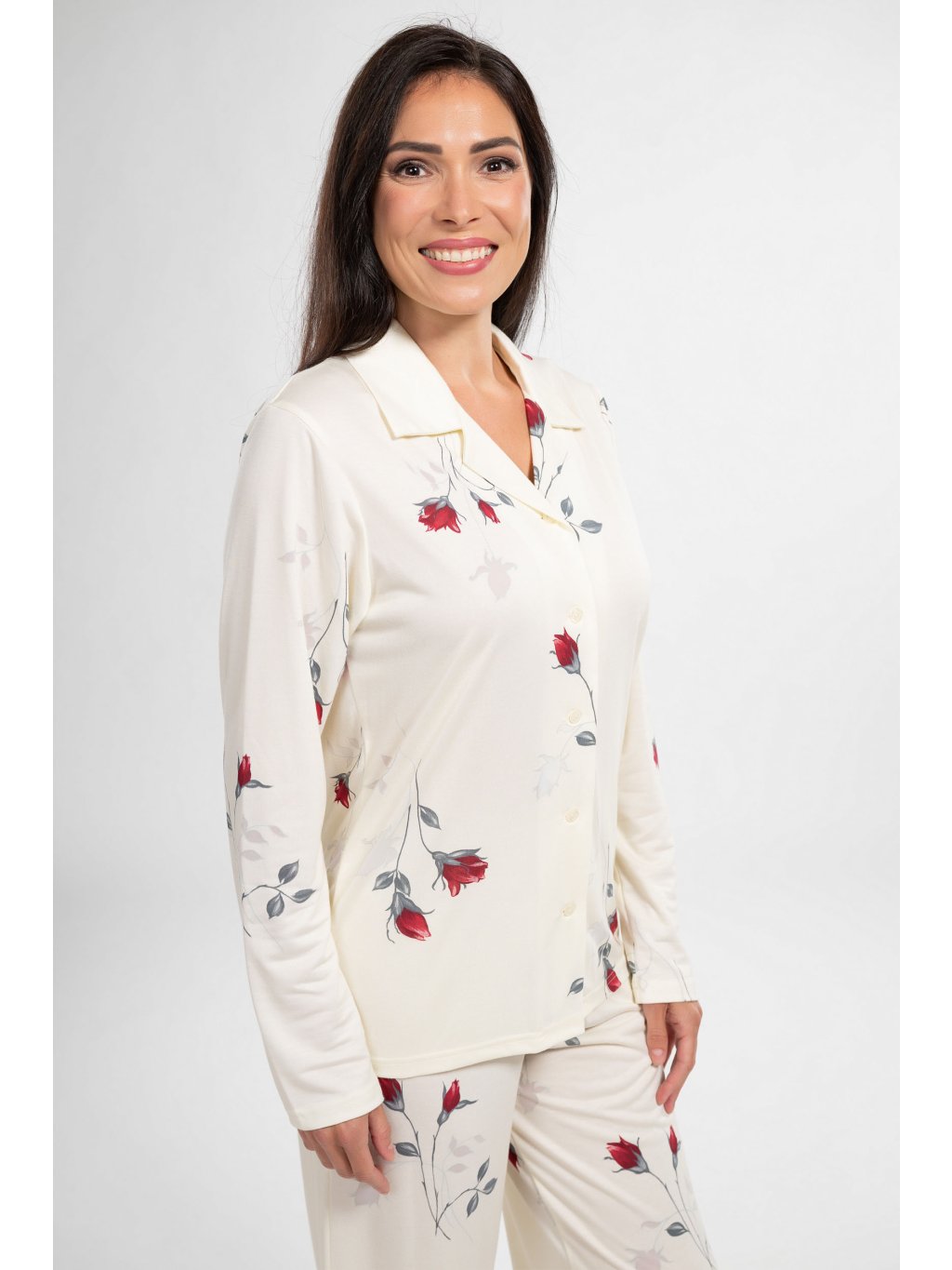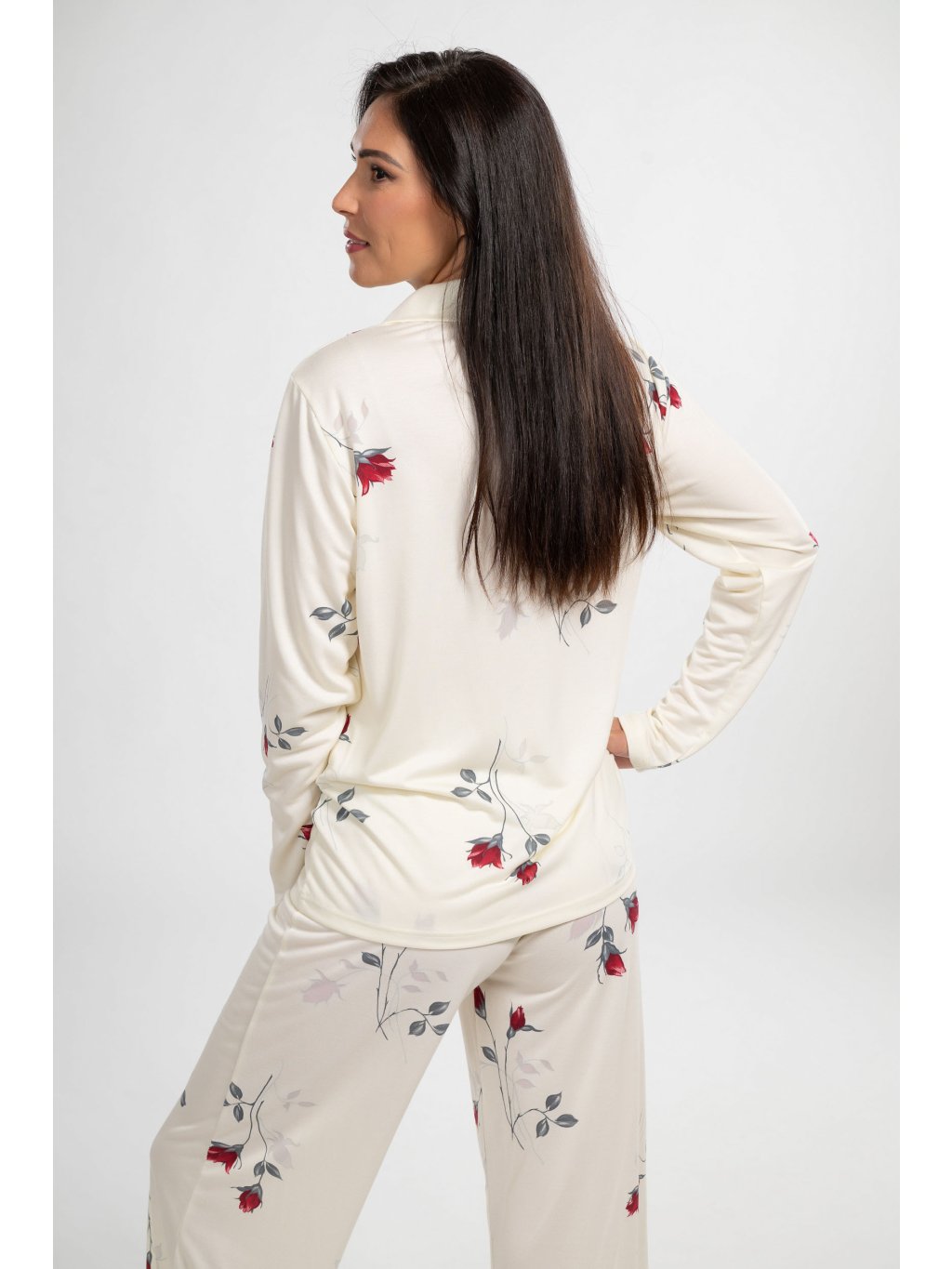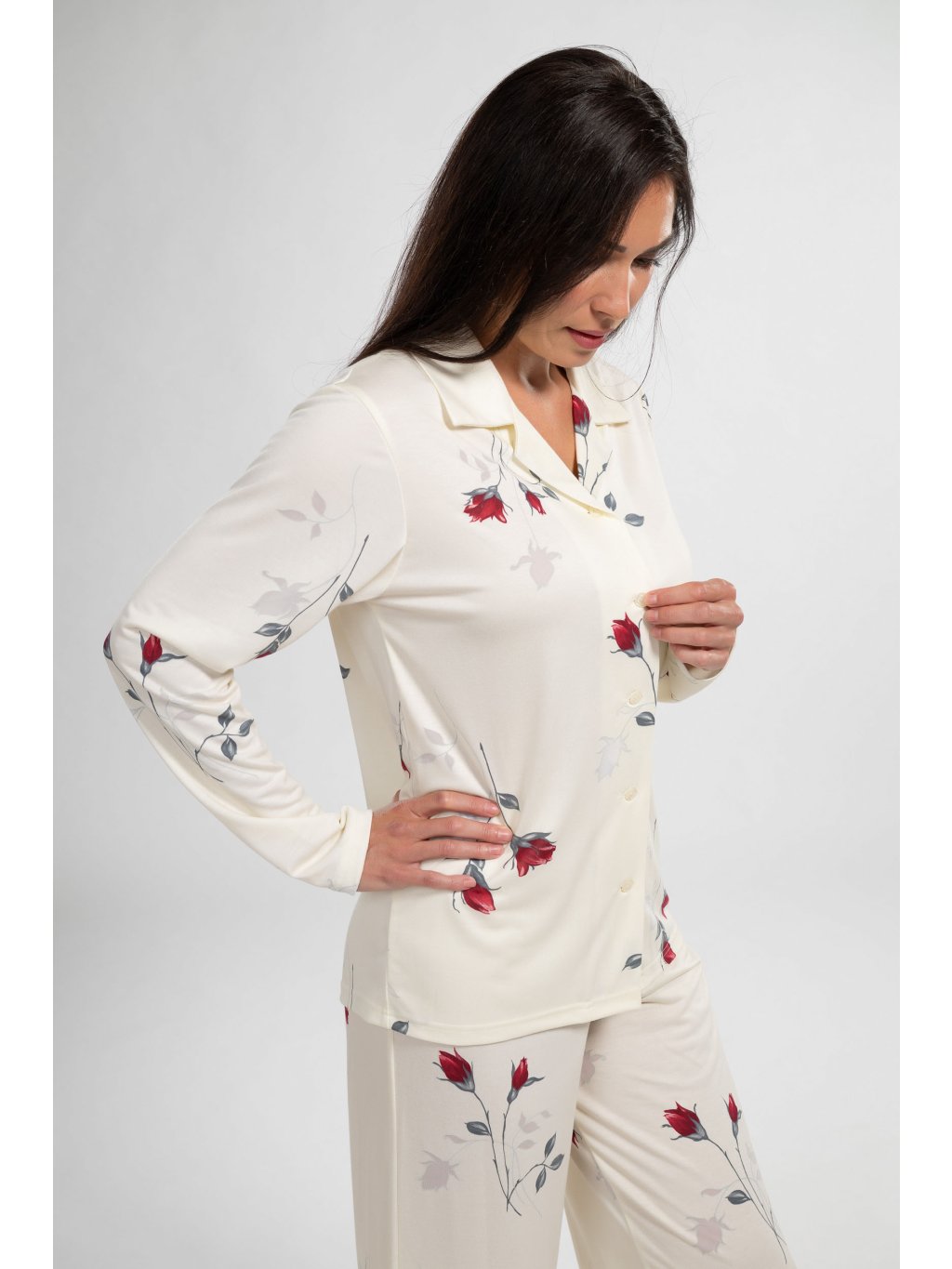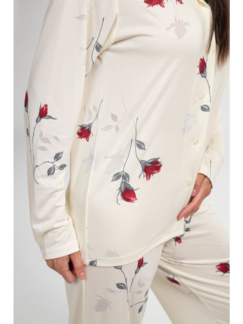 Horní díl s knoflíčkovým zapínáním působí klasicky a nadčasově, zatímco kalhoty s pohodlnou gumou v pase zaručují volnost a komfort po celý večer i noc. Celý model doplňuje originální tisk látky, stejný jako u košilky MARY, díky čemuž můžete oba kousky krásně sladit do jednoho stylu.