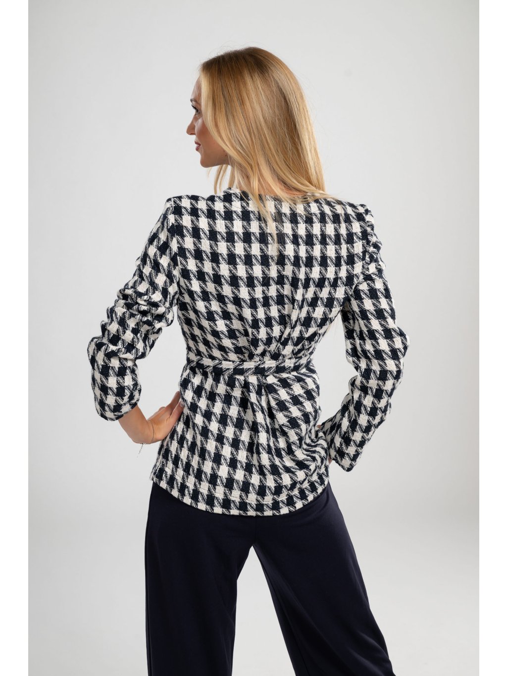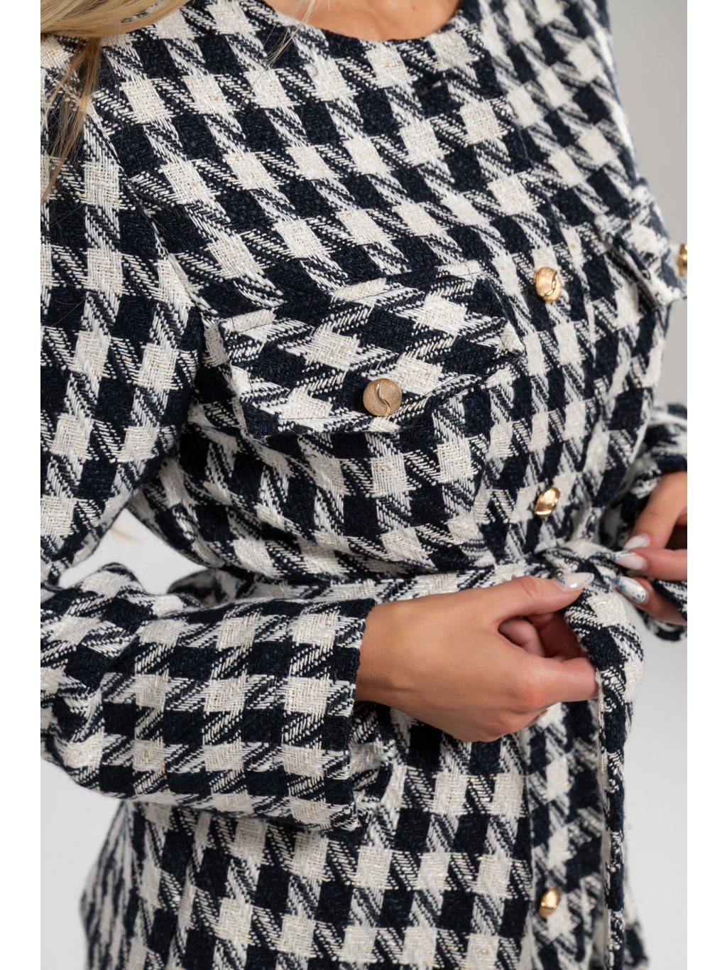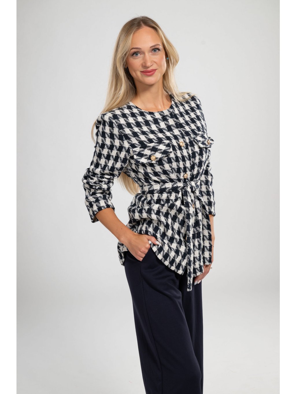 Elegantní kapsy na prsou, možnost stažení páskem v pase a zlaté velké knoflíky umocňují sofistikovaný look a dodávají kabátku jedinečný šarm.